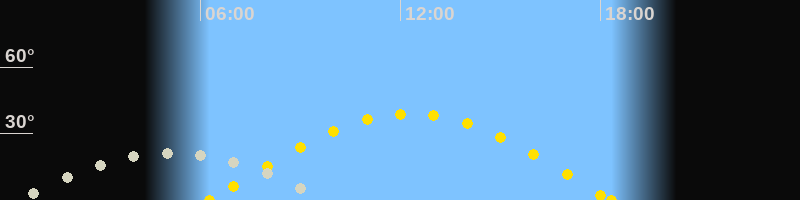 Sonnenuntergang18:19 Uhr im Westen (αAz = 270.3°)