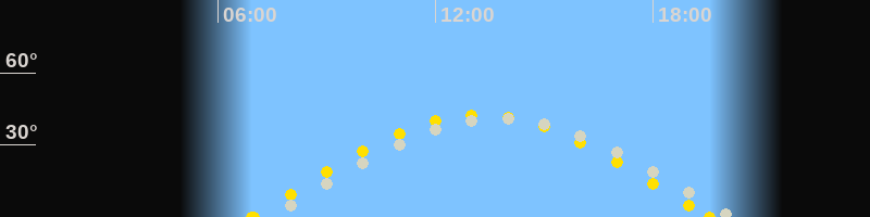 Höchster Sonnenstand (Kulmination)13:15 Uhr (h = 42.5°)