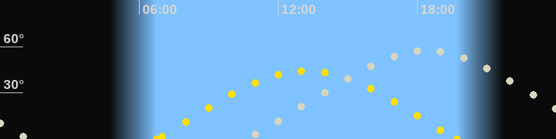 | Sonnenaufgang | 06:45 Uhr im Osten (αAz = 81.4°) |