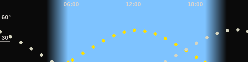 | Höchster Sonnenstand (Kulmination) | 13:12 Uhr (h = 46.3°) |