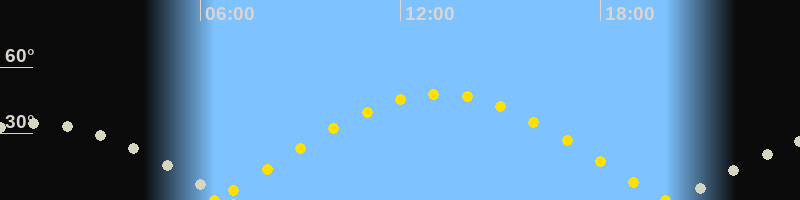 | Sonnenaufgang | 06:25 Uhr im Osten (αAz = 76°) |