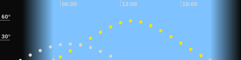| Höchster Sonnenstand (Kulmination) | 13:06 Uhr (h = 58.9°) |