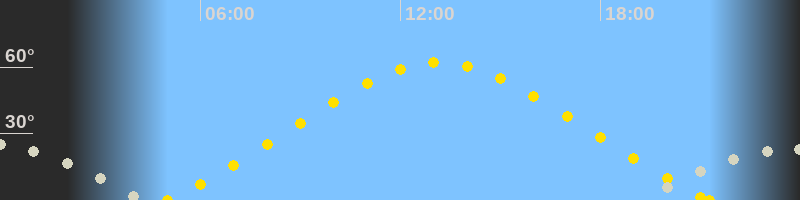 | Höchster Sonnenstand (Kulmination) | 13:09 Uhr (h = 62.1°) |