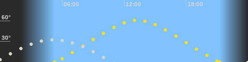 | Höchster Sonnenstand (Kulmination) | 13:16 Uhr (h = 60.9°) |