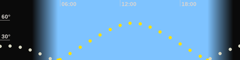 | Höchster Sonnenstand (Kulmination) | 13:16 Uhr (h = 55.5°) |