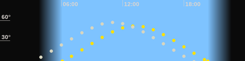 | Sonnenaufgang | 06:05 Uhr im Osten (αAz = 68.9°) |