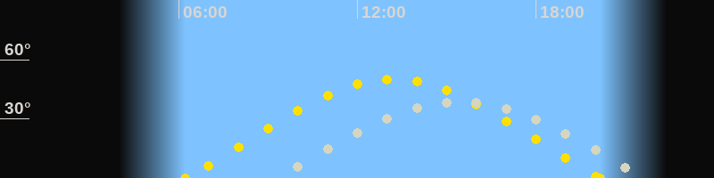 | Sonnenaufgang | 06:13 Uhr im Osten (αAz = 71.7°) |