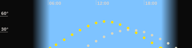 | Sonnenaufgang | 06:14 Uhr im Osten (αAz = 72.2°) |