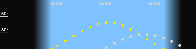 | Höchster Stand (Kulmination) | 17:45 Uhr (h=26.9°) |