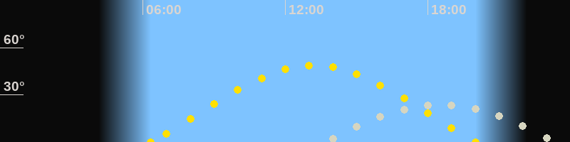 | Höchster Stand (Kulmination) | 18:31 Uhr (h=23.8°) |