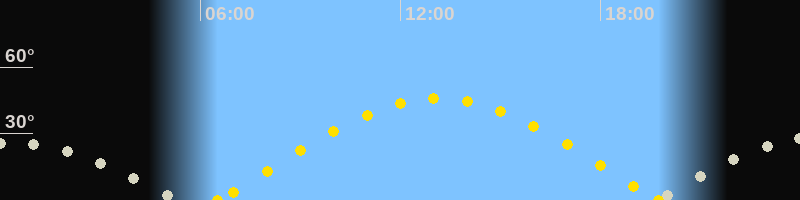 | Sonnenaufgang | 06:31 Uhr im Osten (αAz = 78.6°) |