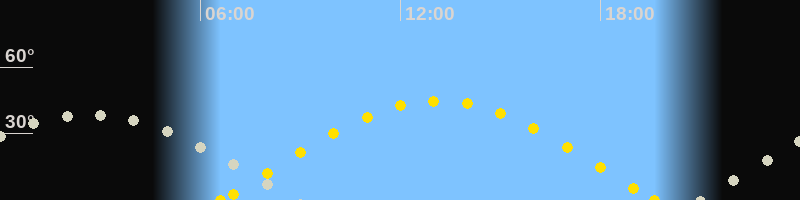 | Sonnenaufgang | 06:36 Uhr im Osten (αAz = 80.4°) |