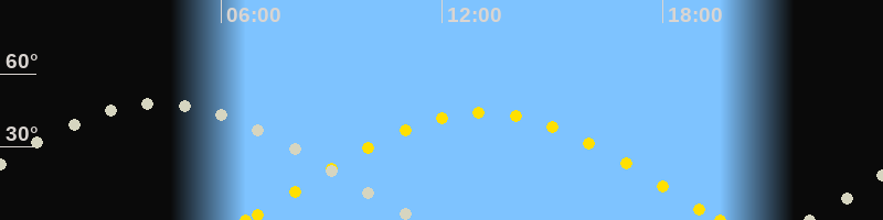 | Sonnenaufgang | 06:39 Uhr im Osten (αAz = 81.6°) |
