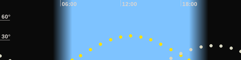 | Höchster Sonnenstand (Kulmination) | 13:00 Uhr (h = 36.3°) |