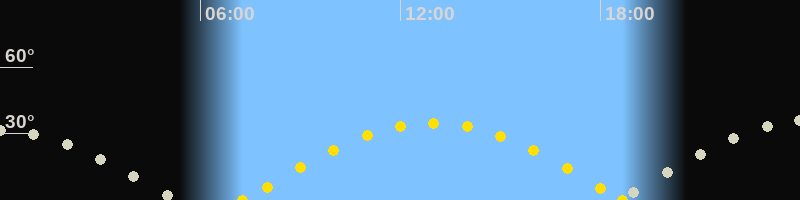| Sonnenaufgang | 07:16 Uhr im Osten (αAz = 96.3°) |