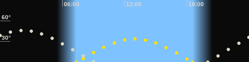 | Höchster Sonnenstand (Kulmination) | 12:58 Uhr (h = 33.6°) |