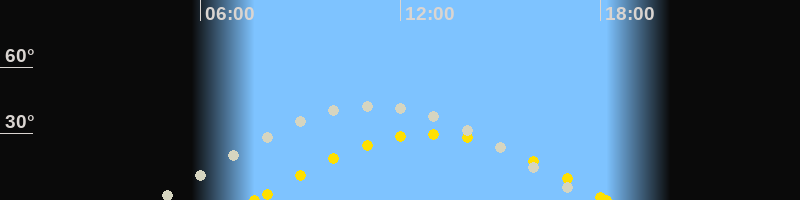 | Höchster Stand (Kulmination) | 11:13 Uhr (h=43°) |