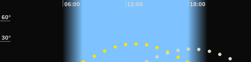 | Höchster Sonnenstand (Kulmination) | 12:54 Uhr (h = 26.7°) |