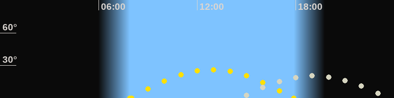 | Sonnenaufgang | 07:54 Uhr im Osten (αAz = 109.8°) |