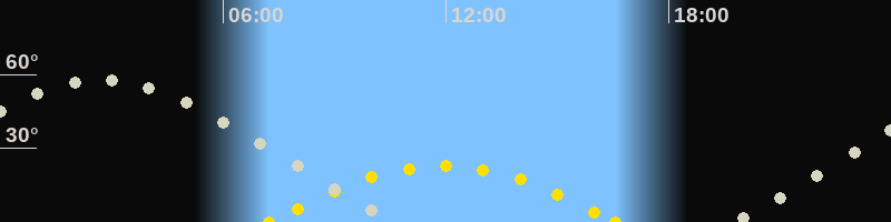 | Höchster Sonnenstand (Kulmination) | 11:54 Uhr (h = 22.9°) |
