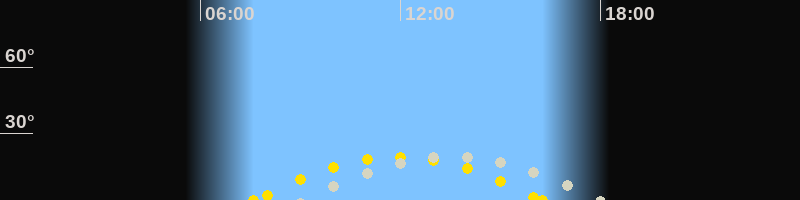 | Höchster Sonnenstand (Kulmination) | 11:55 Uhr (h = 19.5°) |