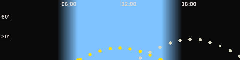 | Höchster Sonnenstand (Kulmination) | 11:57 Uhr (h = 18.1°) |