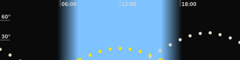 | Höchster Sonnenstand (Kulmination) | 11:58 Uhr (h = 17.7°) |