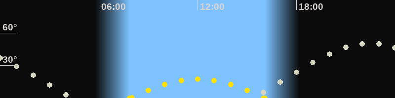 | Höchster Sonnenstand (Kulmination) | 11:59 Uhr (h = 17.4°) |