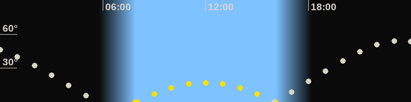 | Höchster Sonnenstand (Kulmination) | 11:59 Uhr (h = 17.3°) |