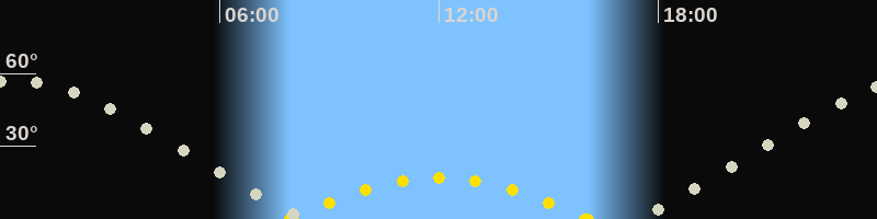 | Höchster Sonnenstand (Kulmination) | 12:00 Uhr (h = 17°) |