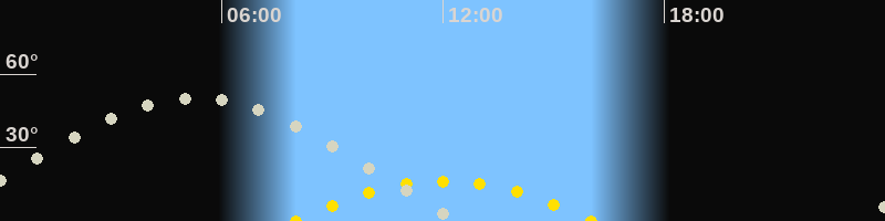 | Höchster Sonnenstand (Kulmination) | 12:02 Uhr (h = 16.4°) |