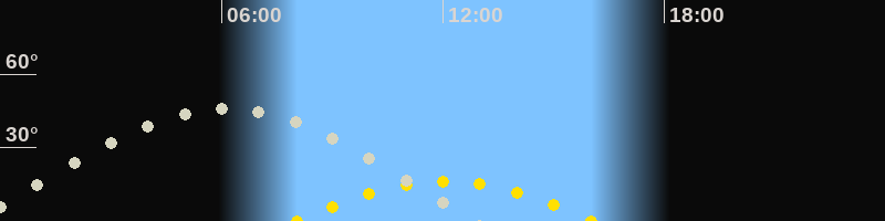 | Höchster Stand (Kulmination) | 06:09 Uhr (h=46.1°) |