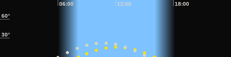 | Höchster Sonnenstand (Kulmination) | 12:05 Uhr (h = 15.9°) |