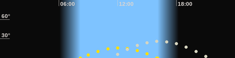 | Höchster Sonnenstand (Kulmination) | 12:09 Uhr (h = 15.8°) |