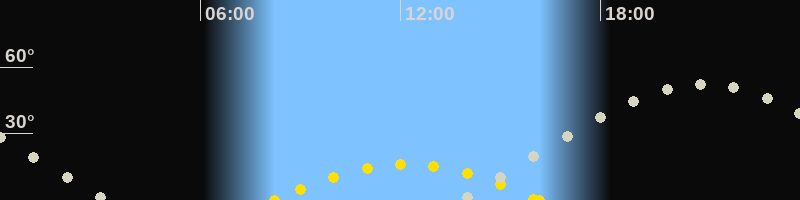 | Höchster Sonnenstand (Kulmination) | 12:12 Uhr (h = 16.1°) |