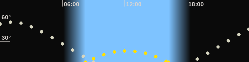 | Höchster Sonnenstand (Kulmination) | 12:14 Uhr (h = 16.5°) |