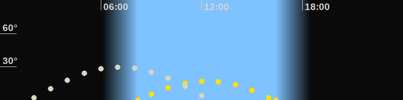 | Höchster Stand (Kulmination) | 07:09 Uhr (h=30.1°) |