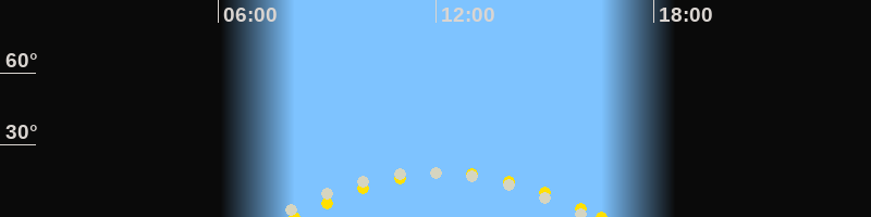 | Höchster Sonnenstand (Kulmination) | 12:19 Uhr (h = 18.4°) |