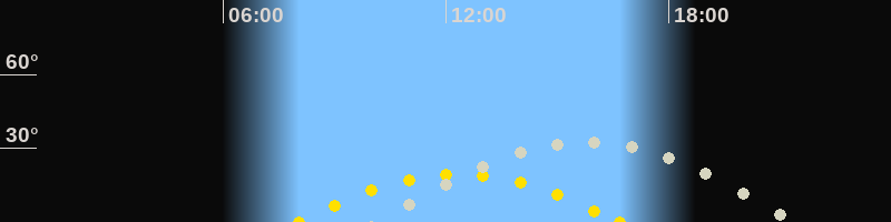 | Höchster Sonnenstand (Kulmination) | 12:21 Uhr (h = 19.4°) |