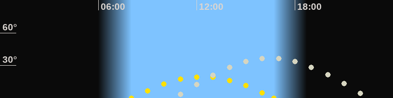 | Höchster Sonnenstand (Kulmination) | 12:21 Uhr (h = 19.7°) |