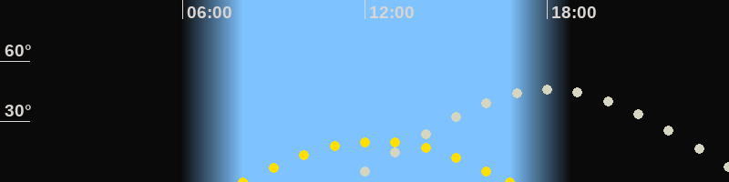 | Höchster Sonnenstand (Kulmination) | 12:22 Uhr (h = 20.1°) |
