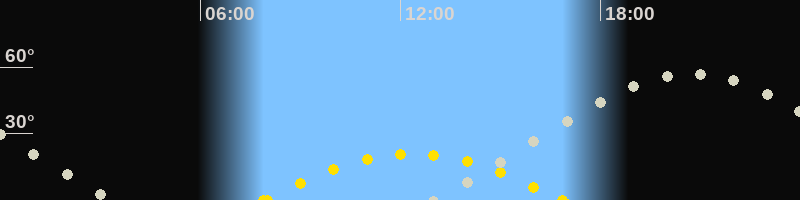 | Höchster Sonnenstand (Kulmination) | 12:22 Uhr (h = 20.9°) |
