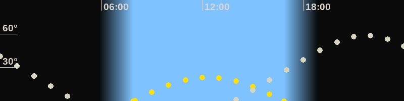 | Höchster Sonnenstand (Kulmination) | 12:23 Uhr (h = 21.1°) |