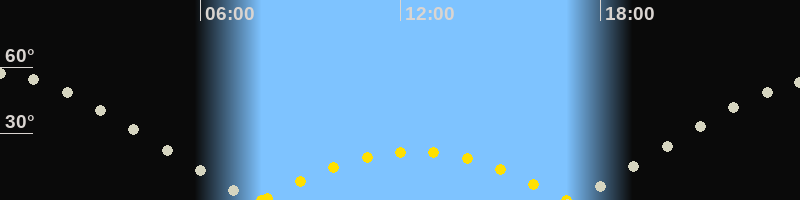 | Höchster Sonnenstand (Kulmination) | 12:23 Uhr (h = 22°) |