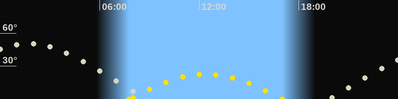 | Höchster Sonnenstand (Kulmination) | 12:23 Uhr (h = 22.5°) |