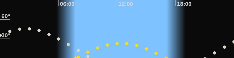 | Höchster Sonnenstand (Kulmination) | 12:24 Uhr (h = 22.8°) |