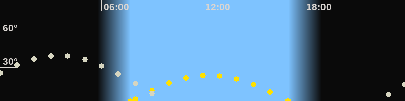 | Höchster Sonnenstand (Kulmination) | 12:24 Uhr (h = 23.1°) |