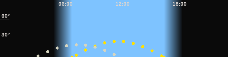 | Höchster Sonnenstand (Kulmination) | 12:24 Uhr (h = 25°) |