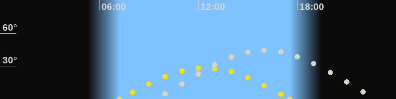 | Höchster Sonnenstand (Kulmination) | 12:23 Uhr (h = 28.4°) |
