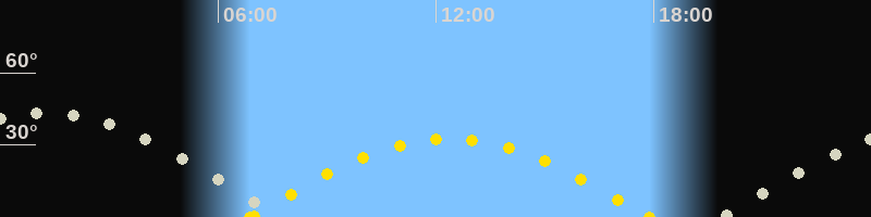 Höchster Sonnenstand (Kulmination)12:22 Uhr (h = 32.6°)